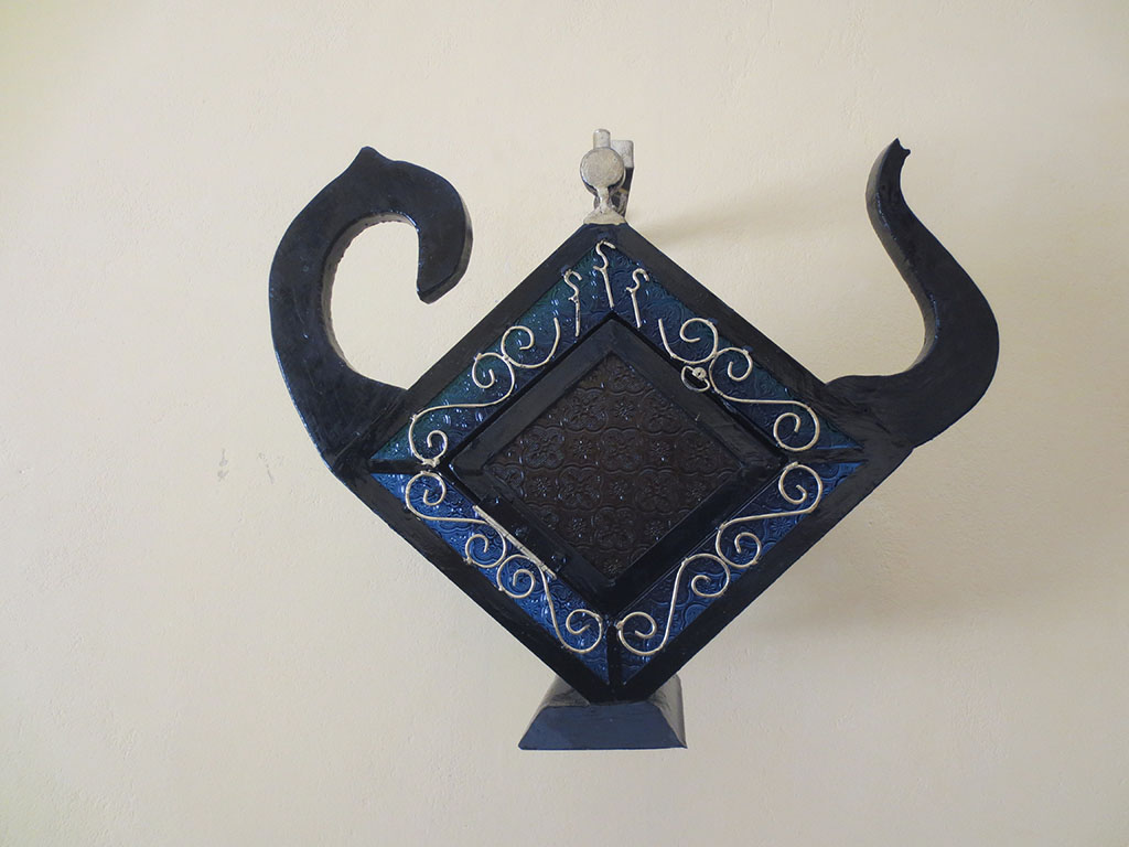 handcrafted and designed as a "curtain rod." ceremonial equipment that helps keep the room cool
